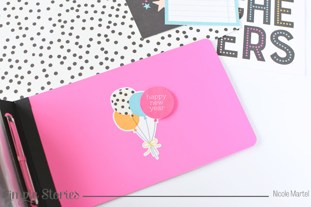 I cut the cut-apart sheet to use for the cover and then added a few stickers using foam squares to pop them up off the cover.This is the inside of the cover. I added a few more stickers... super simple! I used a pink flipbook to document my New Year's Eve celebration.